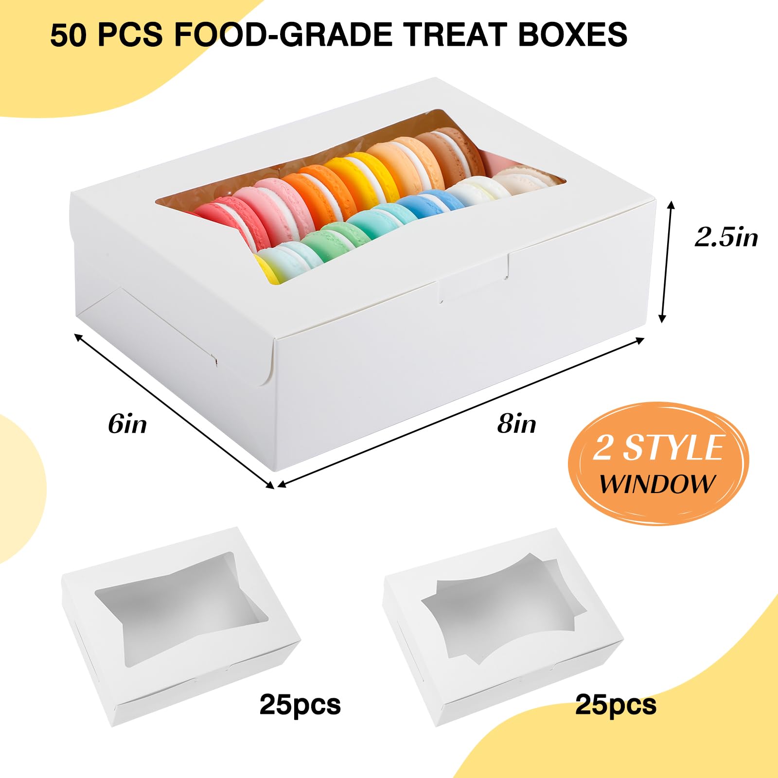 50pcs Cookie Boxes with Window, 8x6x2.5 Inches 2 Style Window Bakery Boxes for Treats, Father's Day, Chocolate Covered Strawberries, Muffins, Donuts
