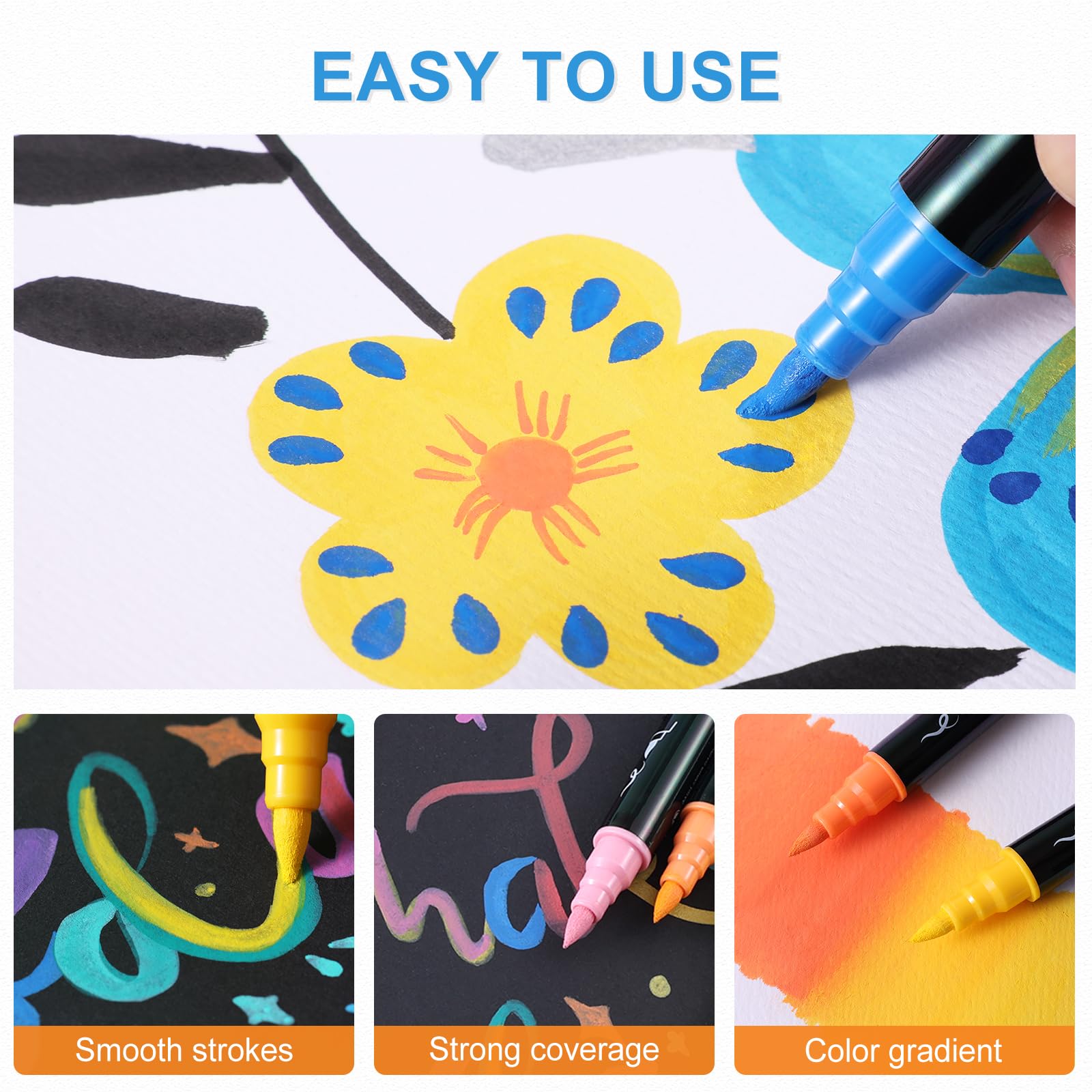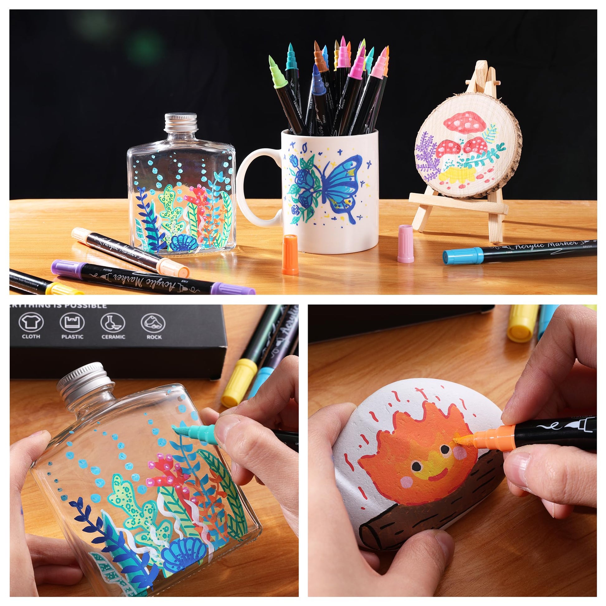 - Upgraded Waterproof and Easy to Use: Unlike ordinary push-type acrylic pens, our craft supplies acrylic paint pens require no shaking or pressing to use. Just open the cap and start creating. Made with professional-grade acrylic paints, odorless and non-toxic, vibrant colours, fast drying, non-fading, smooth flow without leakage, strong coverage and waterproof. It's the perfect choice for maintaining the vividness and beauty of your art works.