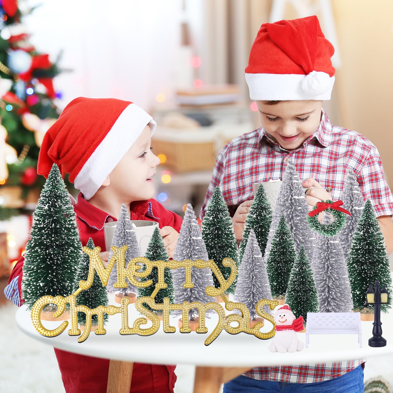 - ☀Bottle Brush Trees: There are 30 together, including 4 kinds of tall and short trees, to decorate your Christmas village, a snowman, a chair, a street lamp, and 4 small garlands.