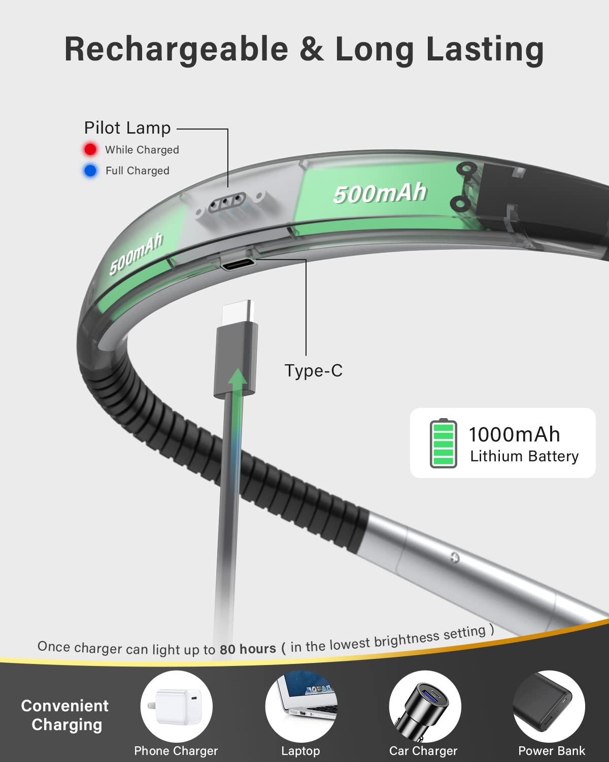 - [Ergonomic Design & Eye Caring] Our neck reading light is designed with your comfort in mind. The adjustable neck and head allow you to position the light at the perfect angle for your reading pleasure. Say goodbye to eye strain and discomfort as you enjoy your favorite books. The book light features advanced LED technology that emits a soft, flicker-free light. This reduces eye fatigue and minimizes the risk of eye strain, making it ideal for extended reading sessions.