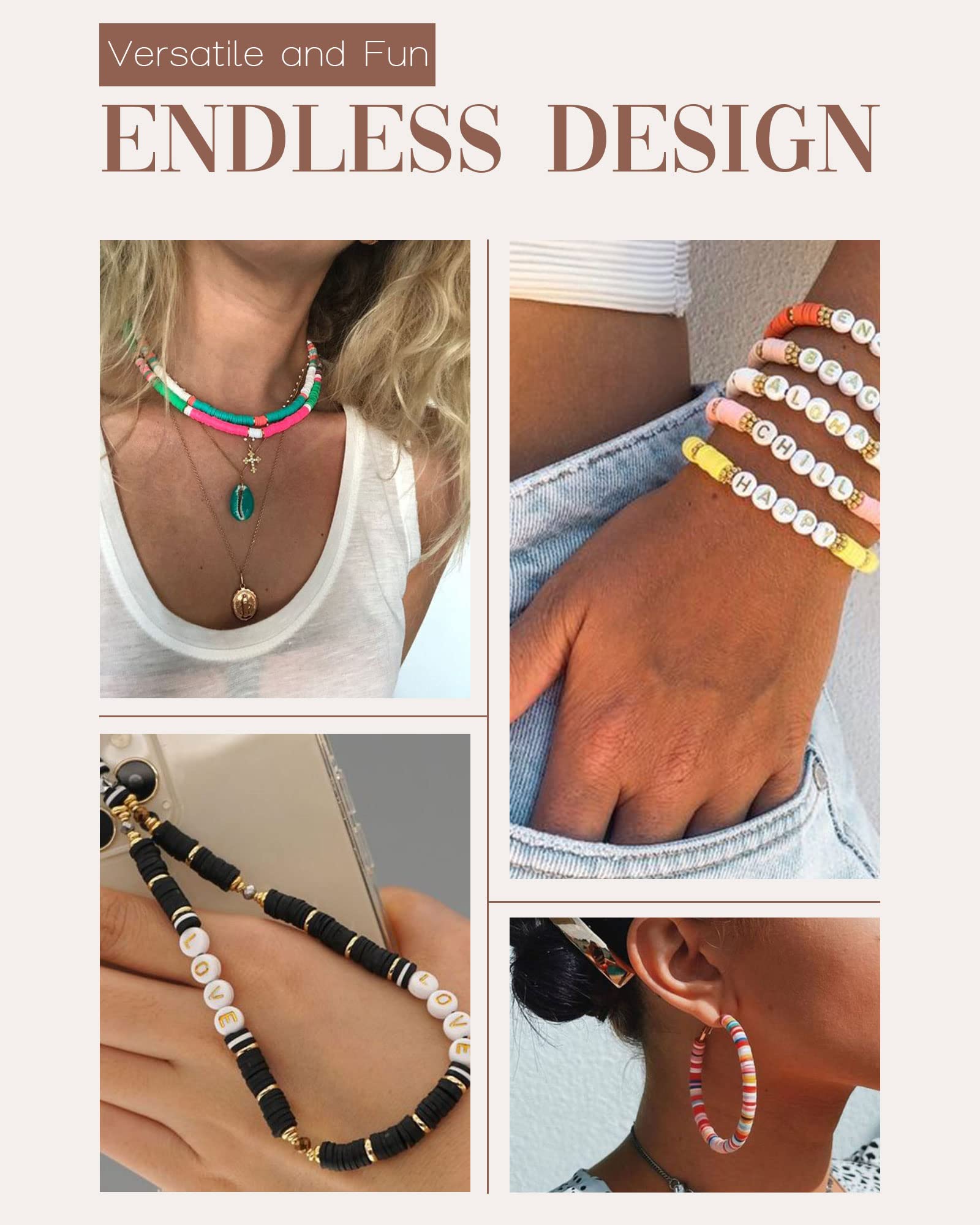 - Versatile and Fun for 6+ Years Old: The bracelet making kit comes with 7500pc clay beads and 1000+ accessories, perfect for jewelry making enthusiasts of all levels. The rich accessories include alphabet letter beads, heart beads, evil eyes beads, smile face beads, pendants, star beads, lobster clasps, etc. More than ten kinds of accessories to make your design more exciting. (Everything shown on the picture contains) It is a fun and creave way to express your personality and style.
