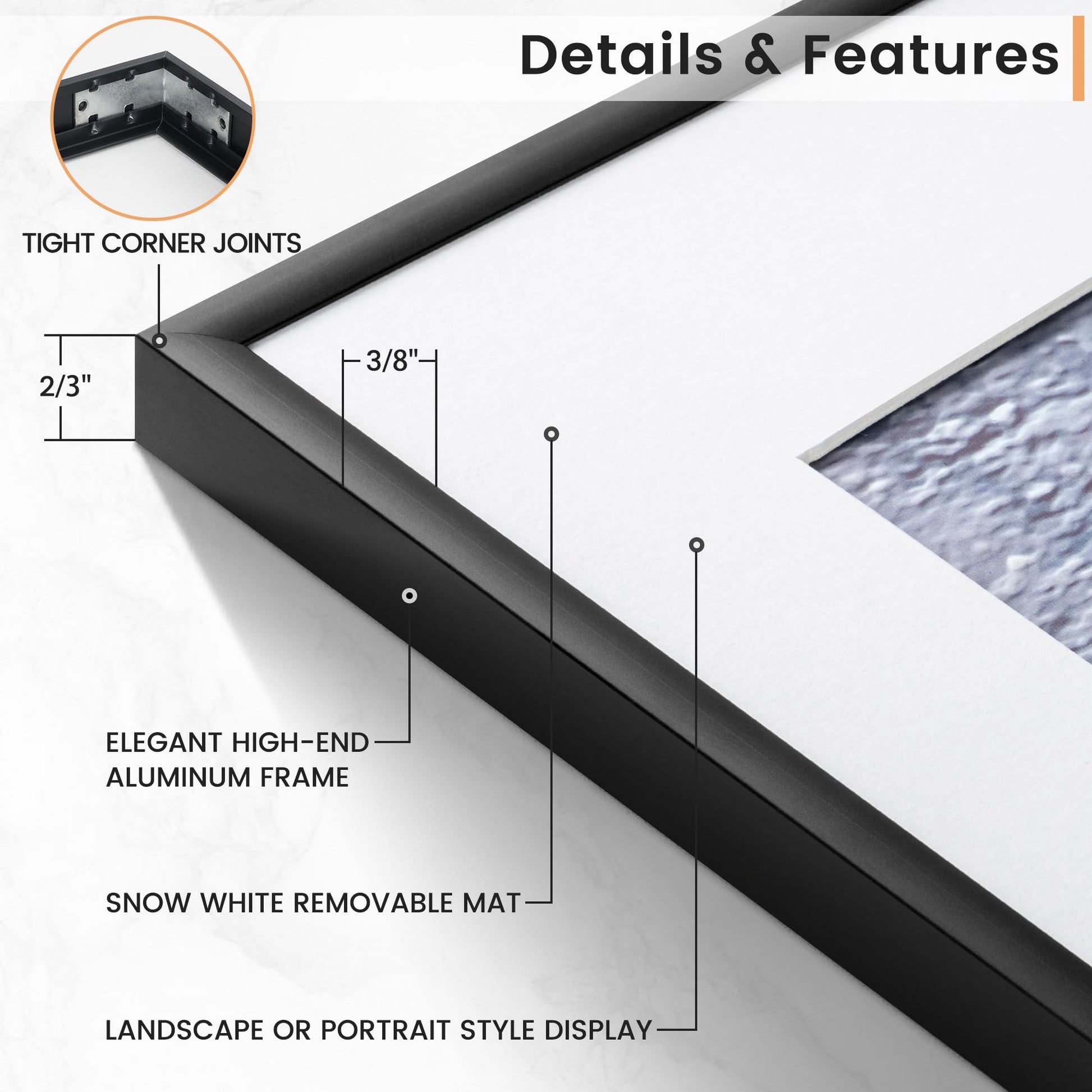 - Intact Parts & Safe Packing - We pack our aluminum picture frames carefully to ensure maximum protection during transit. Each frame is securely shrink-wrapped and reinforced with corner protectors. To prevent any possible damage, we use special customized corrugated boxes to package all our frames.