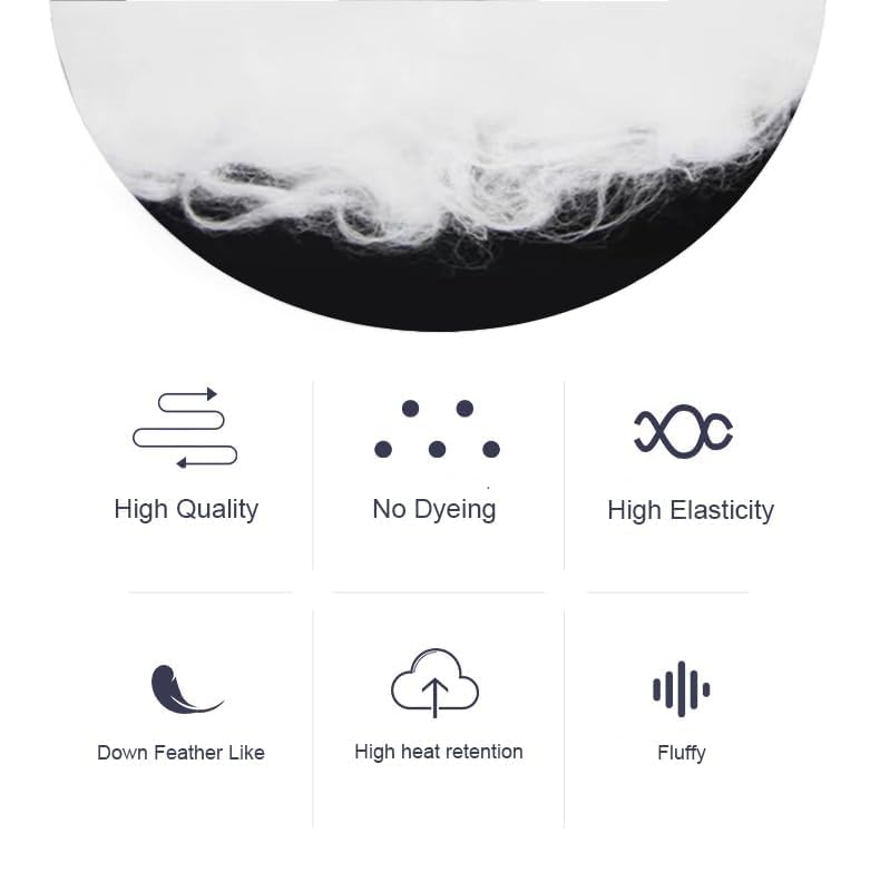 - Unique Design: This fiber fill is down feather like which is more fluffy and warmer,and we add some small threads to the fiber fill to make it look more beautiful, in addition, don't worry about these small threads will affect the use, they are fiber fill too. Only need to rub, the thread will become fluffy.
