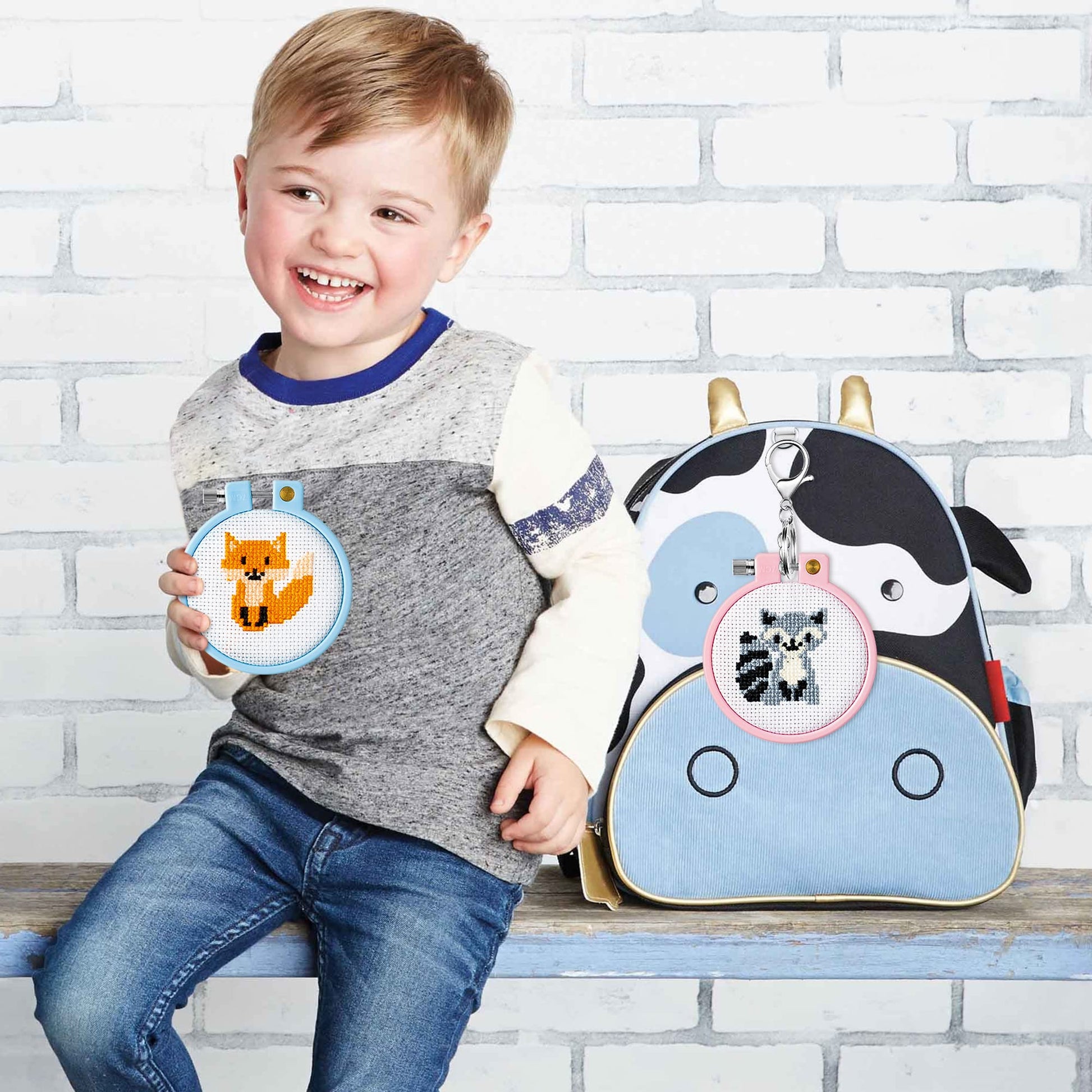 5Pcs Embroidery Kit for Kids Stamped Cross Stitch DIY Key Chain with Woodland Animal Patterns Needlepoint Starter Kits Craft Supplies for Beginners Adults Schoolbag