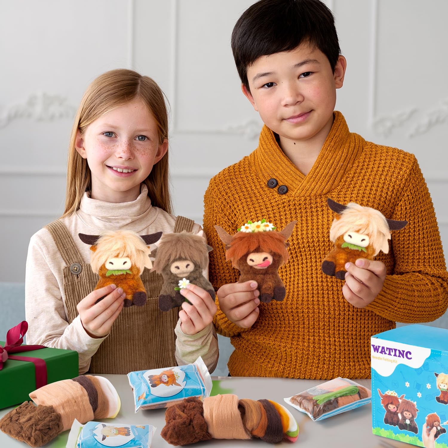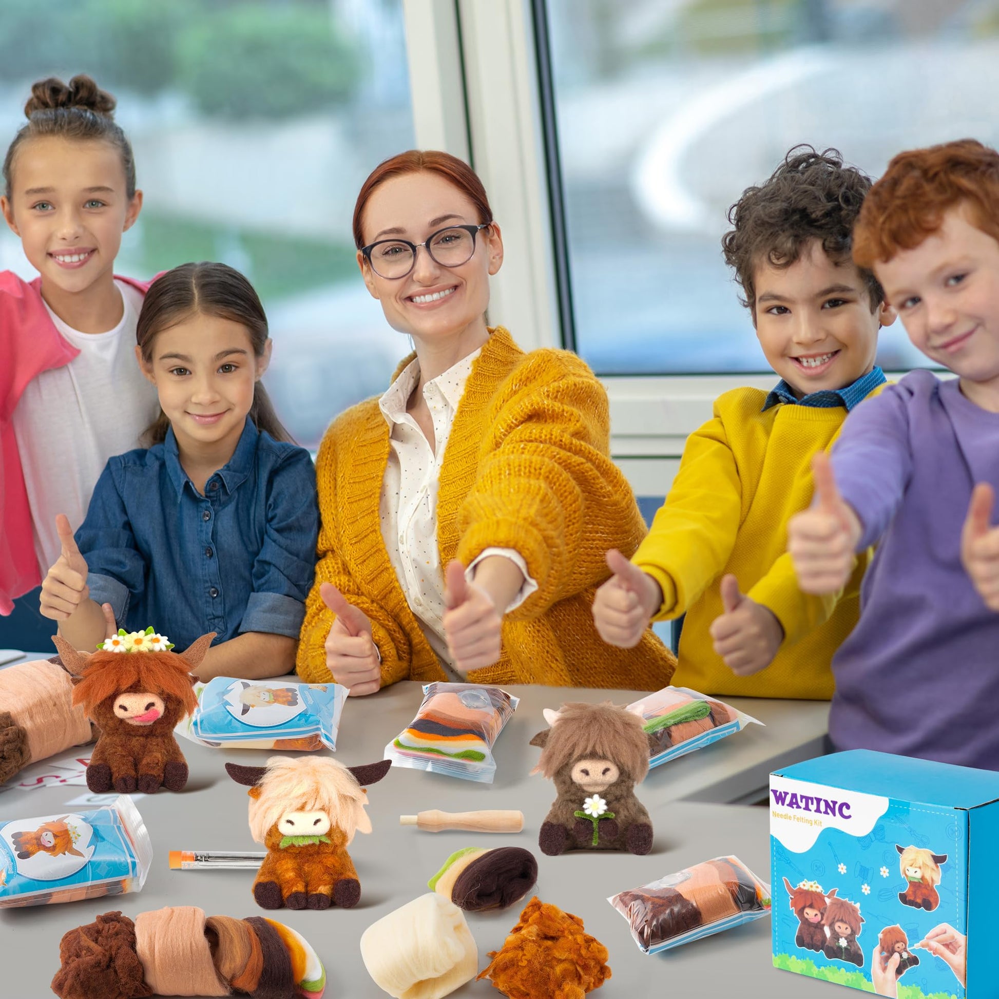 Highland Cow Needle Felting Kit - Set of 3 Different Highland Cow Doll Wool Felt Needle Felting Tools Foam Pad, DIY Home Decoration Needle Felting Craft Party Supplies for Beginners