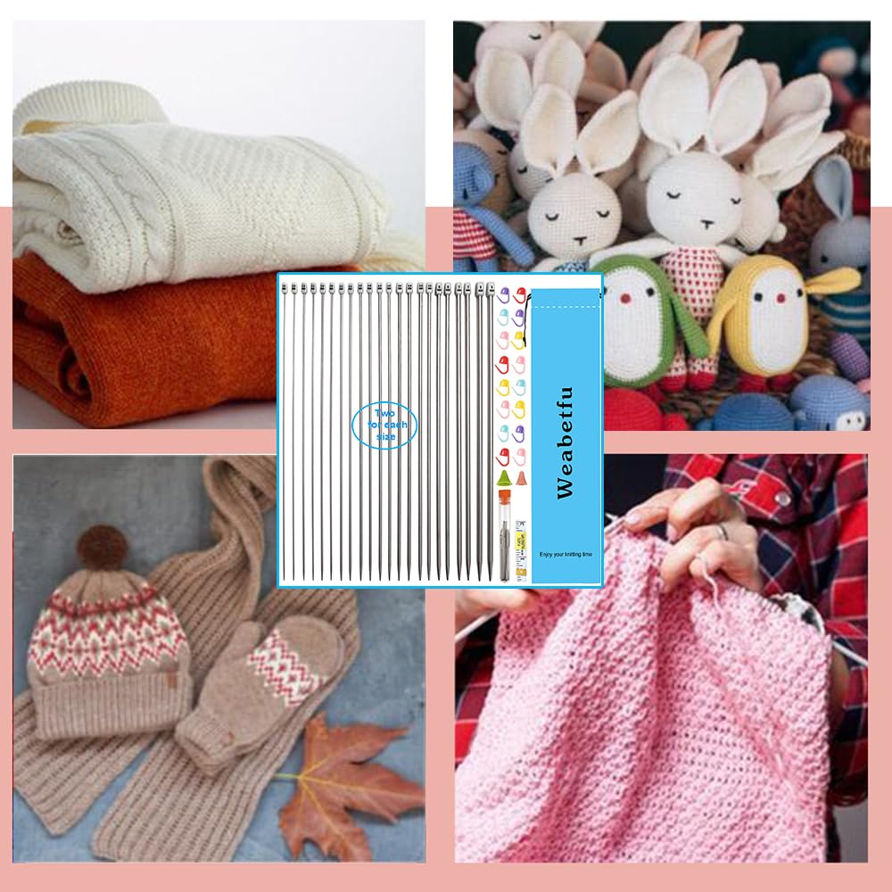 - Enough Knitting Accessories for Knit - Knitting kits with 22 stainless steel knitting needles,20 stitch markers,9 large-eye blunt needles, 2 Needles Point Protectors,1 measure tape,1 knitting needles bag,Our knitting set includes everything you need to knit.