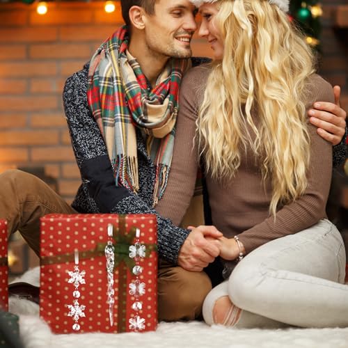 96 pcs Christmas Acrylic Hanging Ornament Set 3 Inch Clear Acrylic Flat Disc Ornaments DIY Christmas Crafts with Transparent Crystal Snowflakes for Xmas Winter New Year Party Hanging Decor