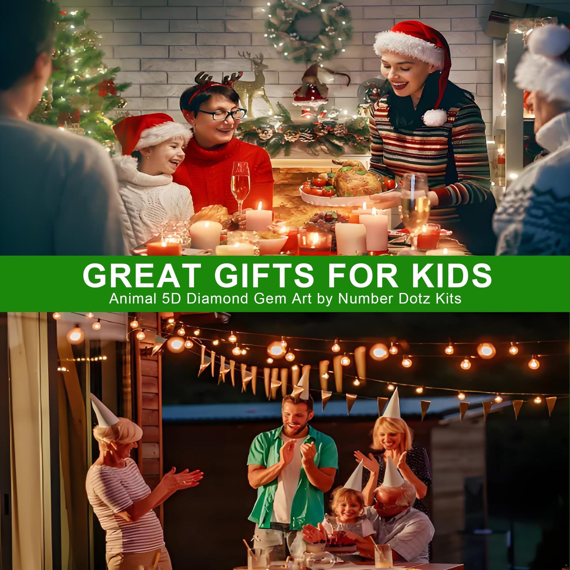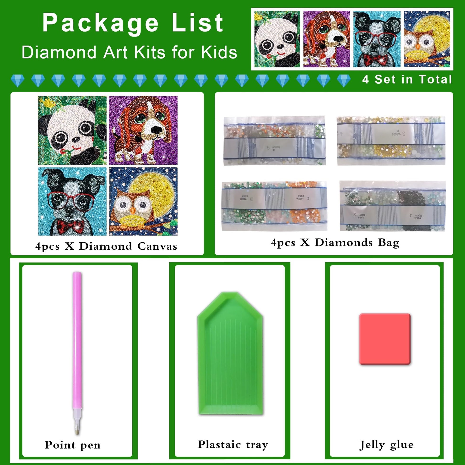 Diamond Painting Kits for Kids, 4Pcs Kids Diamond Art Animal 5D Diamond Gem Art by Number Dotz Kits Art and Crafts for Kids Ages 6-8-10-12 Girls Boys for Birthday Halloween