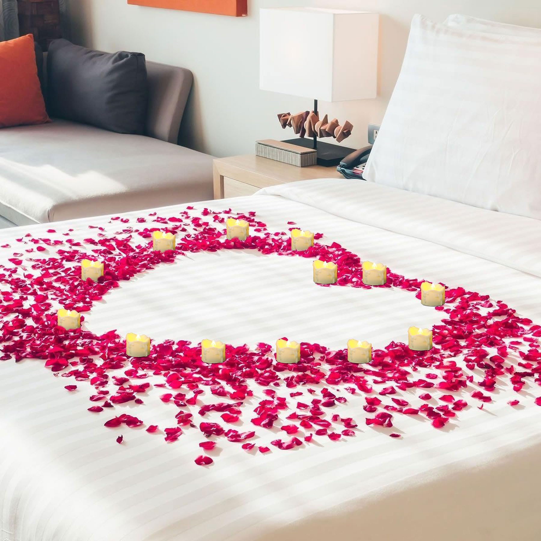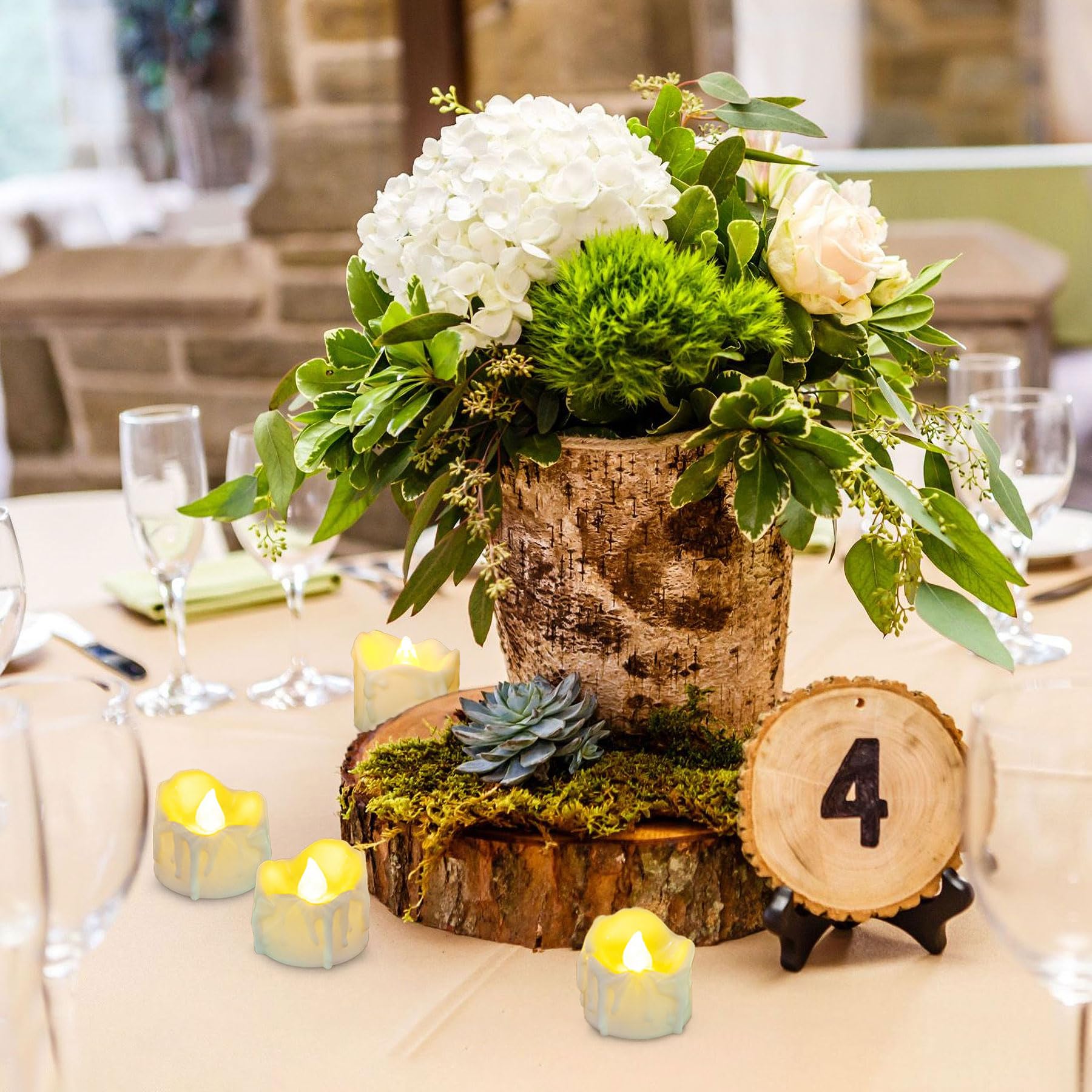 - 【Versatile and elegant LED tea lights】Create a cozy ambiance with these flameless mini tea lights. The realistic flickering flame and simulated wax design make them resemble real candles. Perfect for outdoor and indoor use, they enhance home decor, anniversary parties, bridal showers, and marriage proposals.