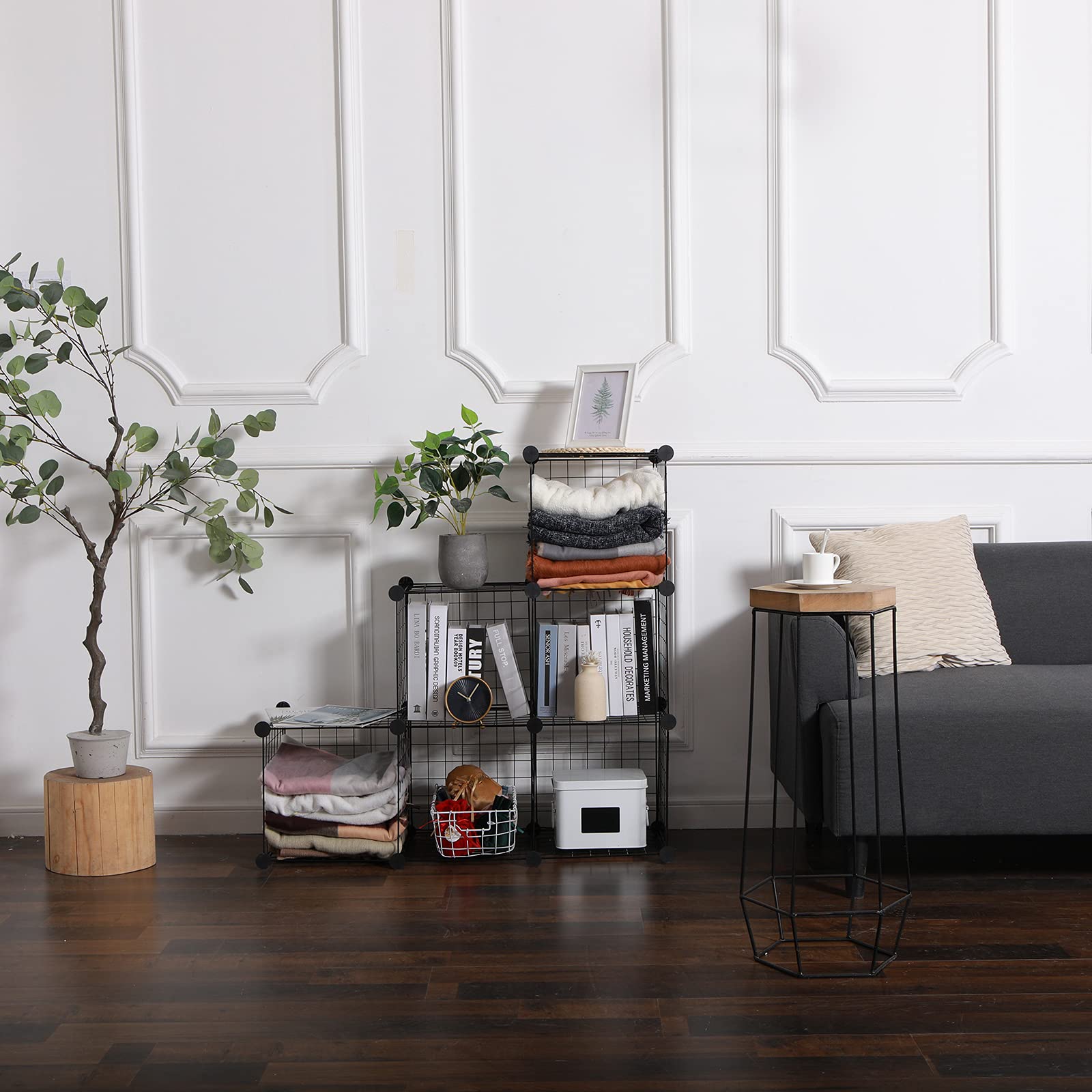 Cube Storage Organizer,6 Cube Closet Organizers and Storage,Wire Metal Grids Bookshelf,Stackable Modular Shelves,Cube Storage Organizer Bins for Home,Office,Kids Room,Black