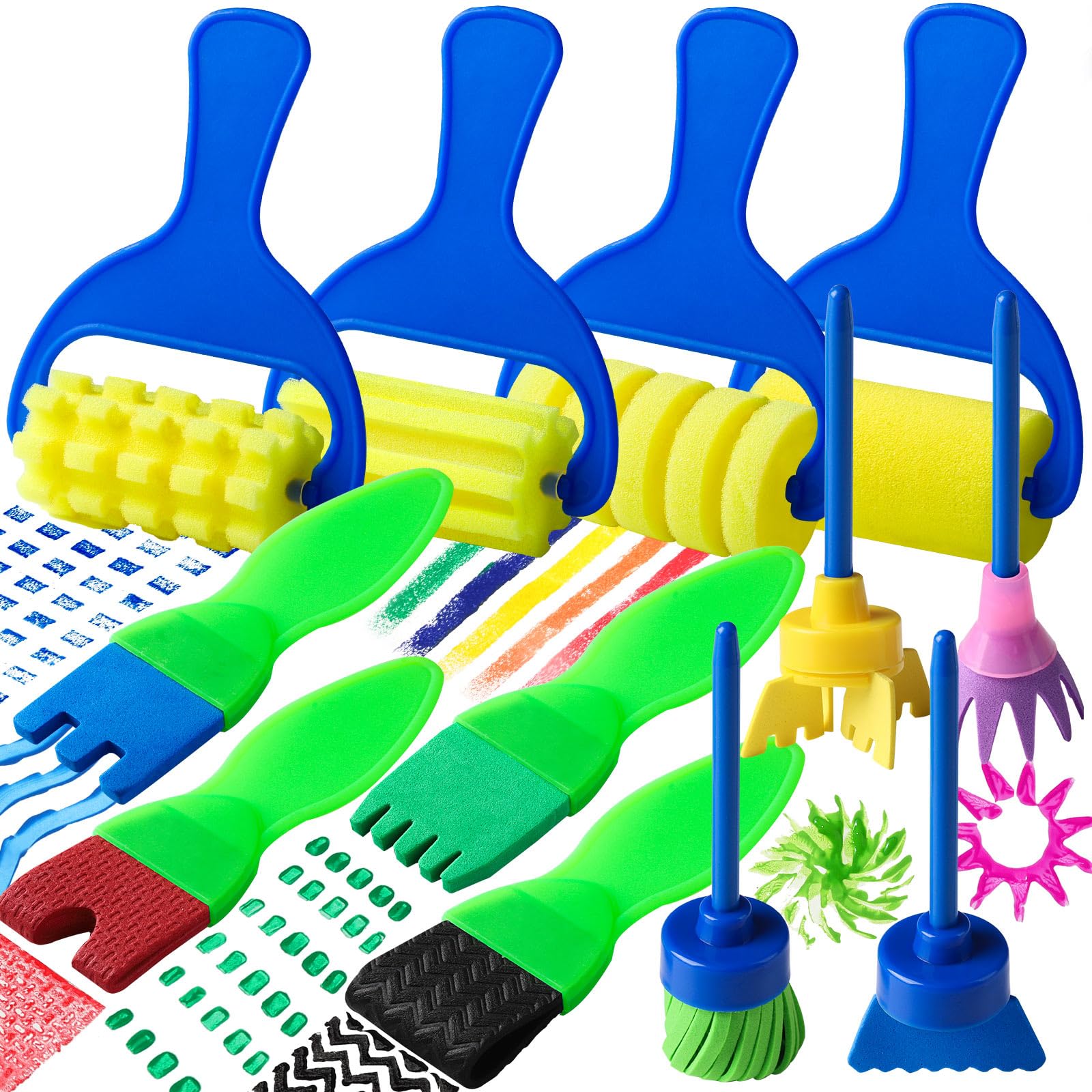 - Safe Material: Made of water-absorbing sponge and foam, lightweight, plastic handles are easy to grasp and use, ideal toddler art supplies