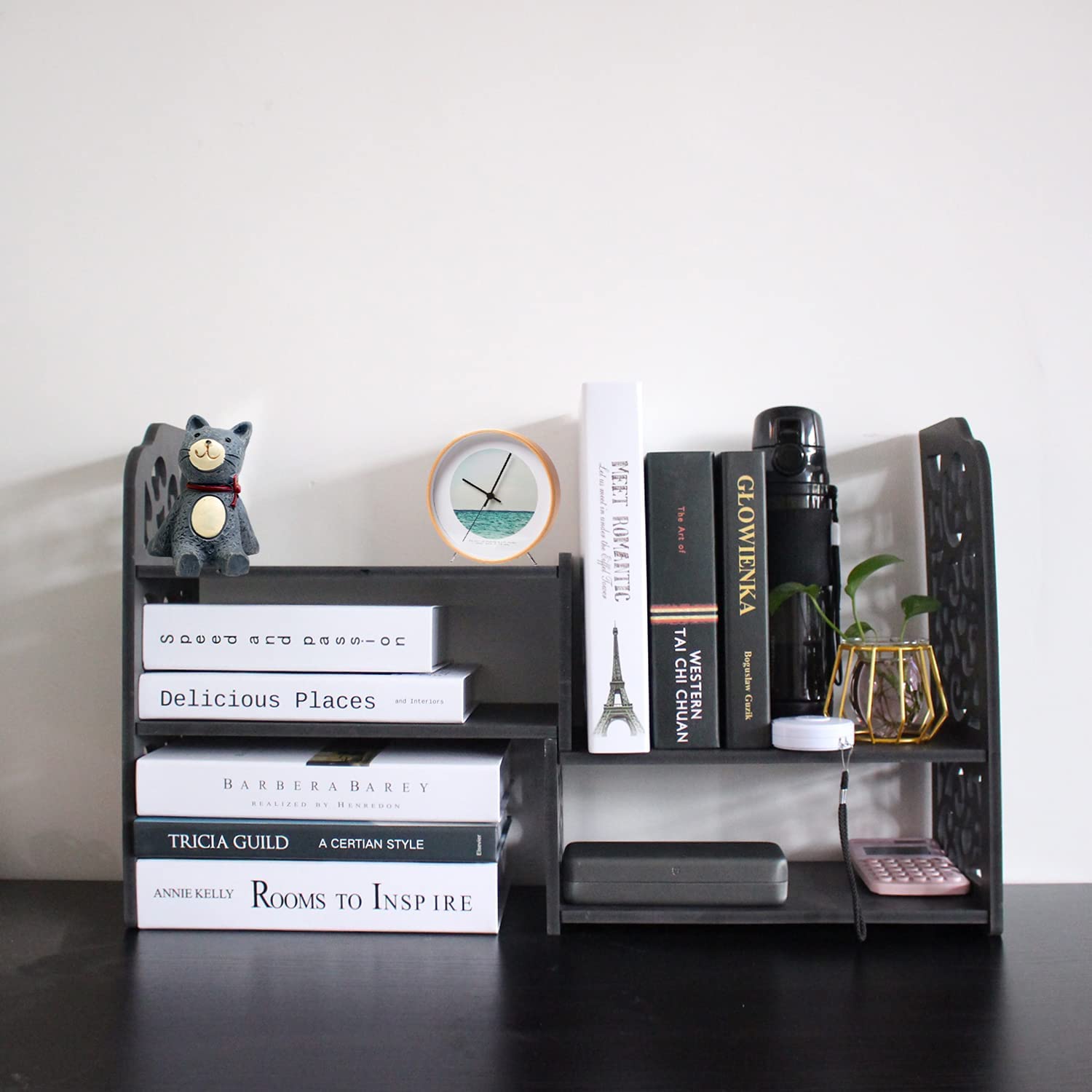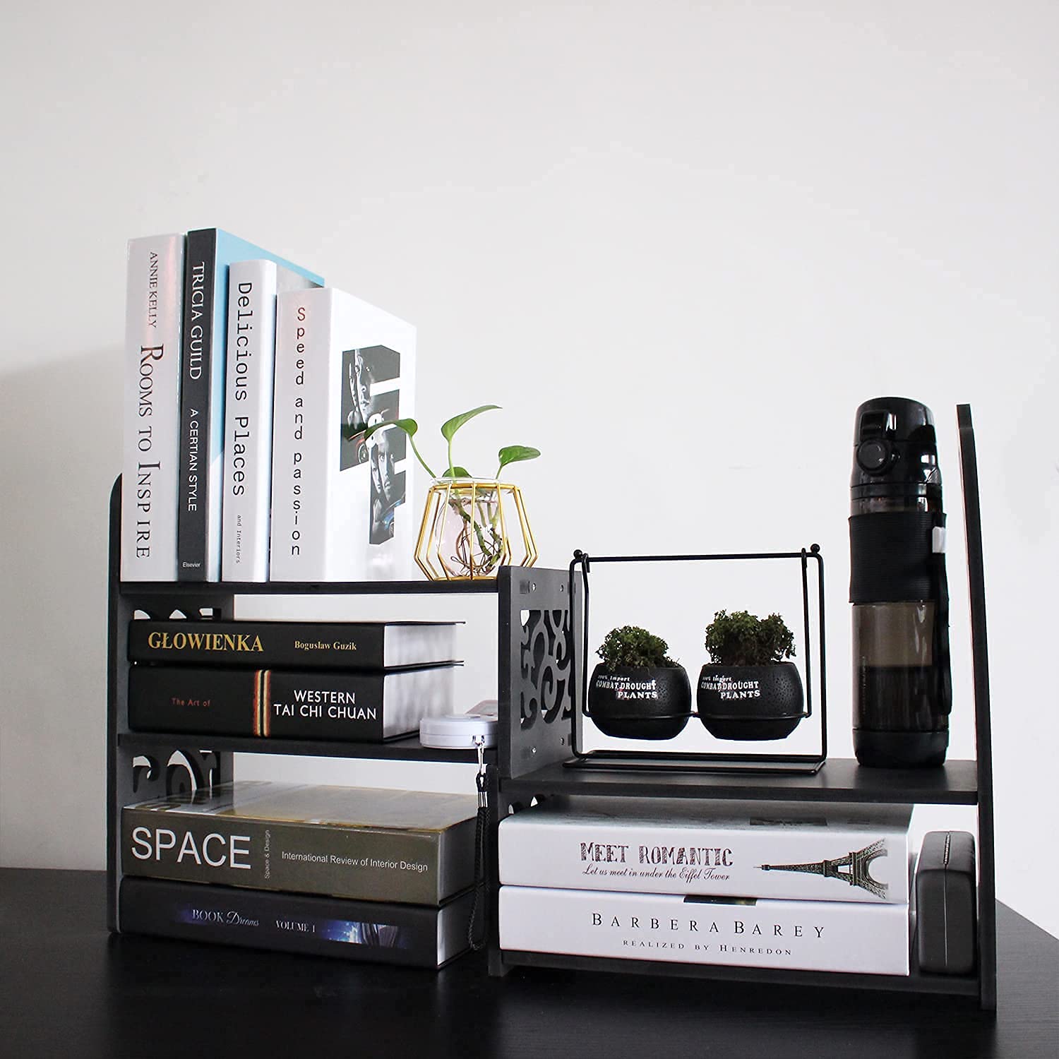 - Give your books a home: Is there nowhere to put your books, after a while, the book will fall apart, then your books become crumpled, with this small desktop bookshelf, your books will be able to maintain a new look