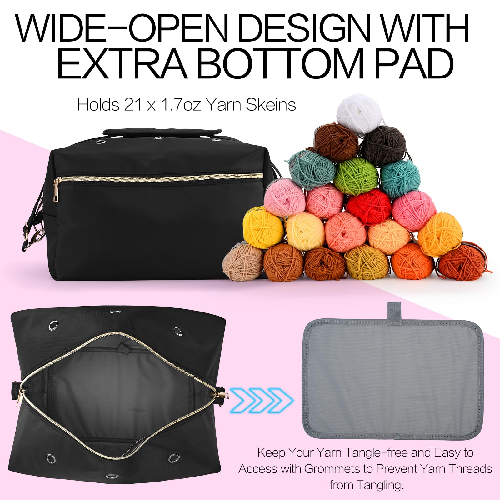 home Yarn Bag Crochet Bag Organizer Knitting Bag Organizer Crochet Storage Yarn Holder for Crochet Accessories Yarn Storage Bag for Crocheting Gifts for Crochet Lovers,Mom,Women,Black