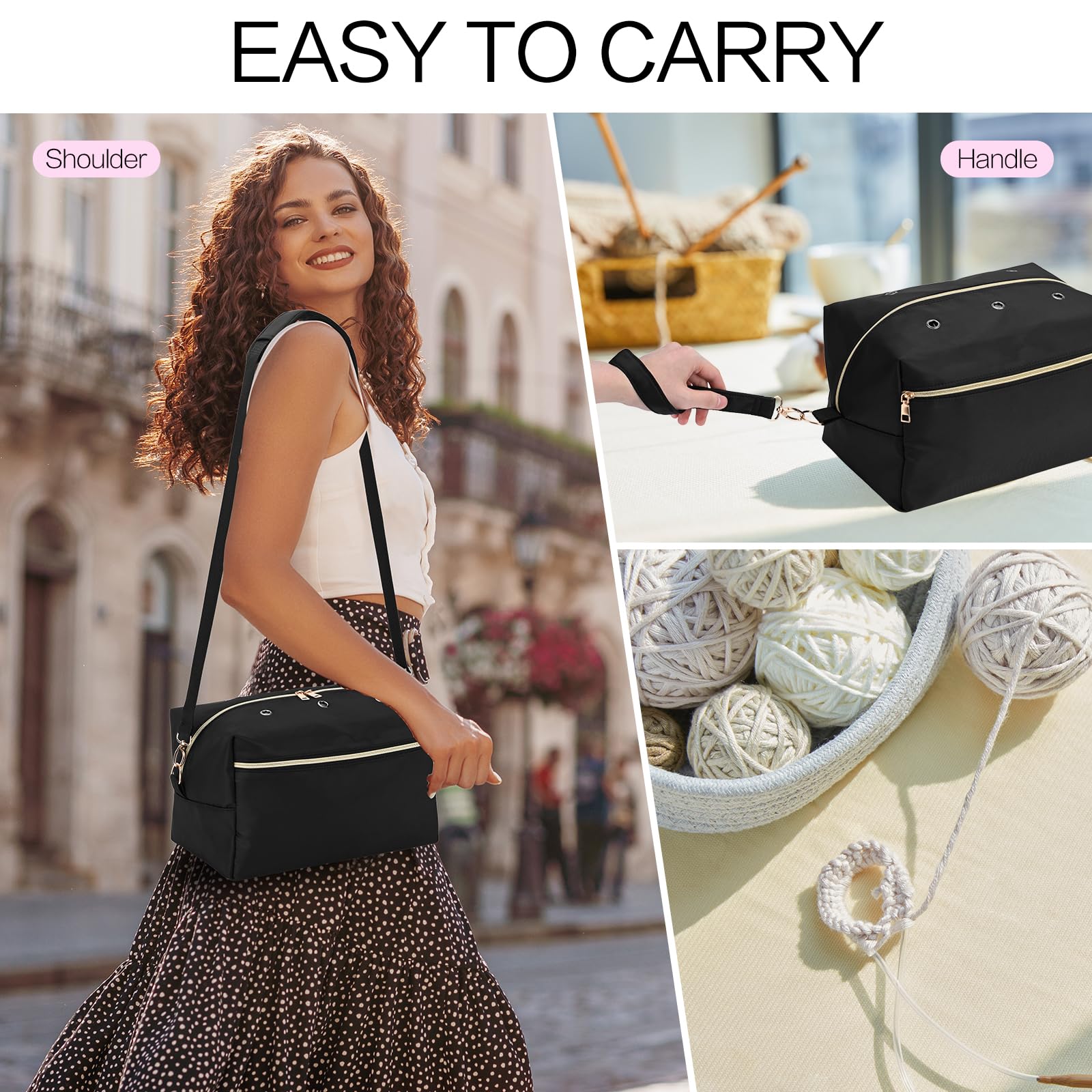 - [Easy to Carry] The handle which is perfect for carrying by hand or hanging on your wrist while knitting or crocheting.The removable adjustable shoulder strap give you another option to carry it on the arm, making your handcraft easy and enjoyable