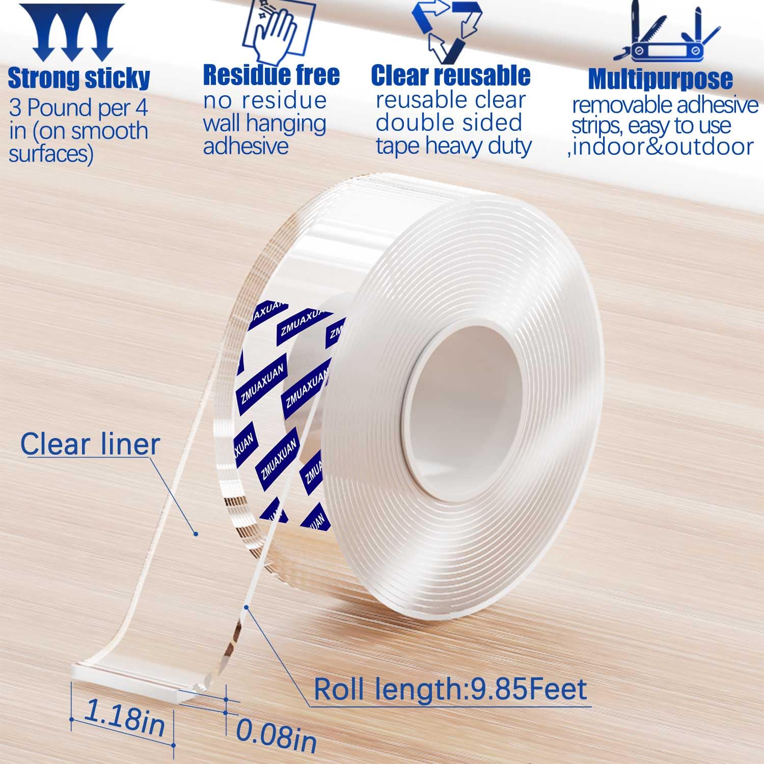 - ★EASY TO USE★ The adhesive tape is transparent traceless, this nano sticky tape is suitable for various smooth surfaces including wood, ceramic tile, glass, mirror, metal, plastic, boards, marble, walls tough. it can be removed at any time, easy to operate, no residue. note: the double sided adhesive is strong sticky, improper use can cause wall surface damage. so it is not suitable for inferior walls, oil and water stained walls, peeling walls and wallpaper, paint wall, rough surfaces. ZMUAXUAN tape can be used permanently. If it needs to be disassembled in the future, the hanging tape can not be used on painted walls because removing the tape will damage the wall surface.