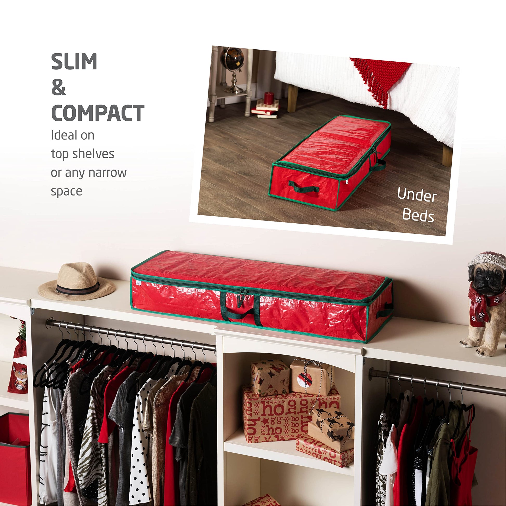 - SPACE SAVING WONDER - Our flat, slim wrapping paper storage containers are expertly designed to fit perfectly in deep shelves, narrow spaces, against walls, and even under beds! When the holiday season is over, simply collapse the containers and store them with ease in closets, garages, attics, or sheds. It's a merry solution for optimizing your space.